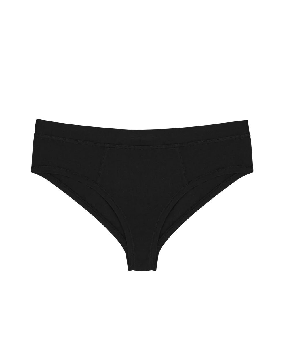 Our cheekiest style outside of a thong, this is a flattering, butt-contouring cut with half-cheek coverage. Soft yet structured, it stays put without digging in. The Cheeky has a low-mid rise with a deeper side, cuffed waistband, and visible front panel.
