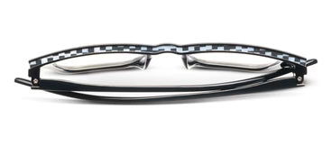 Meet Bernadette, the perfect blend of sweet charm and bold attitude. The chunky square silhouette gets an edgy upgrade with a playful checkered pattern along the top channel, while the contrast between classic Black and fresh White/Tokyo Tortoise options lets you choose just how much sass you want to serve up today.
