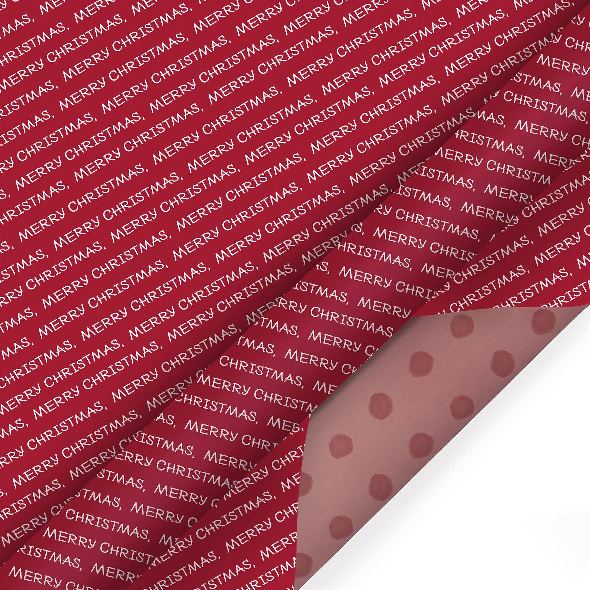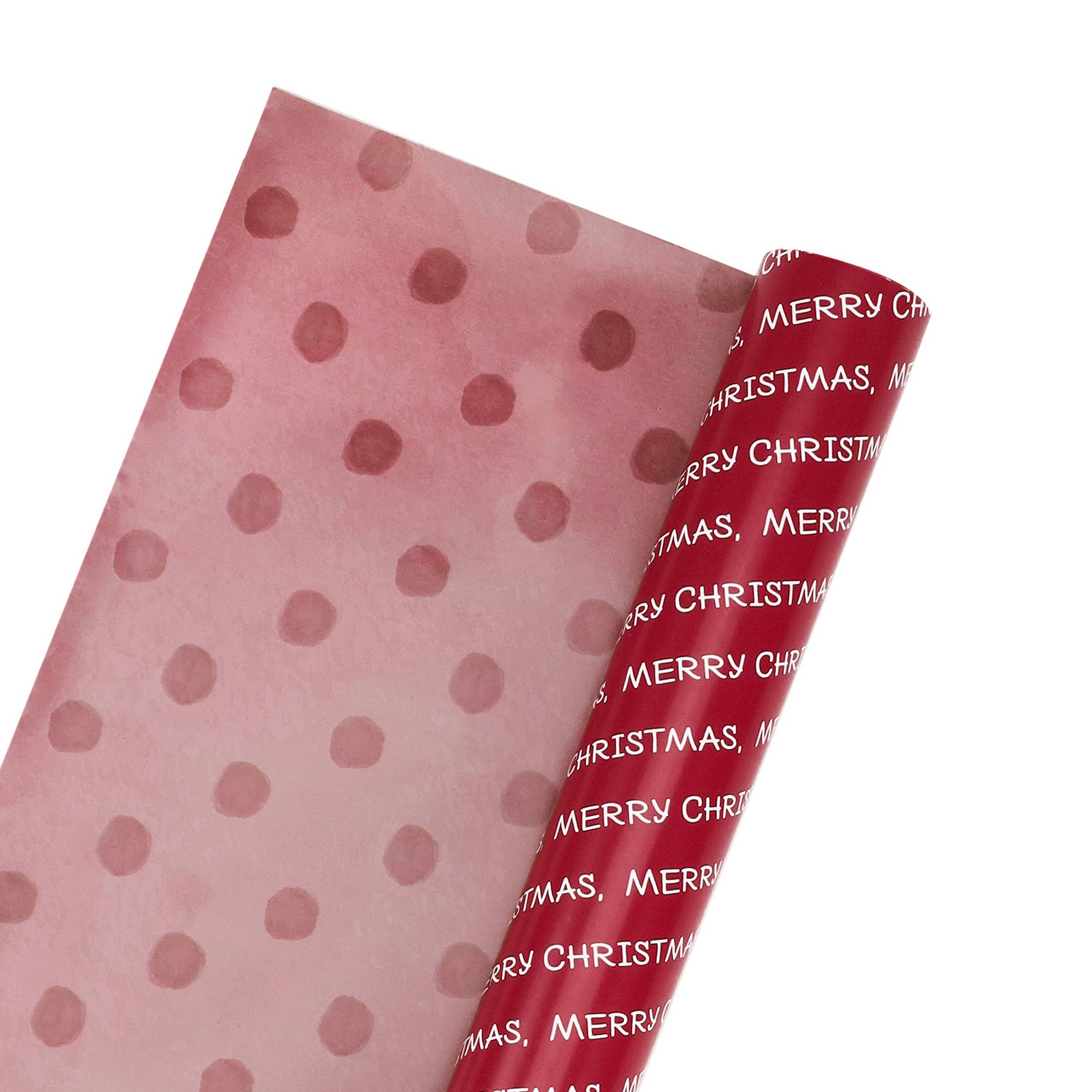30" x 10' Holiday Reversible Wrapping Paper | Merry Christmas White on Red/Red Watercolor Dots