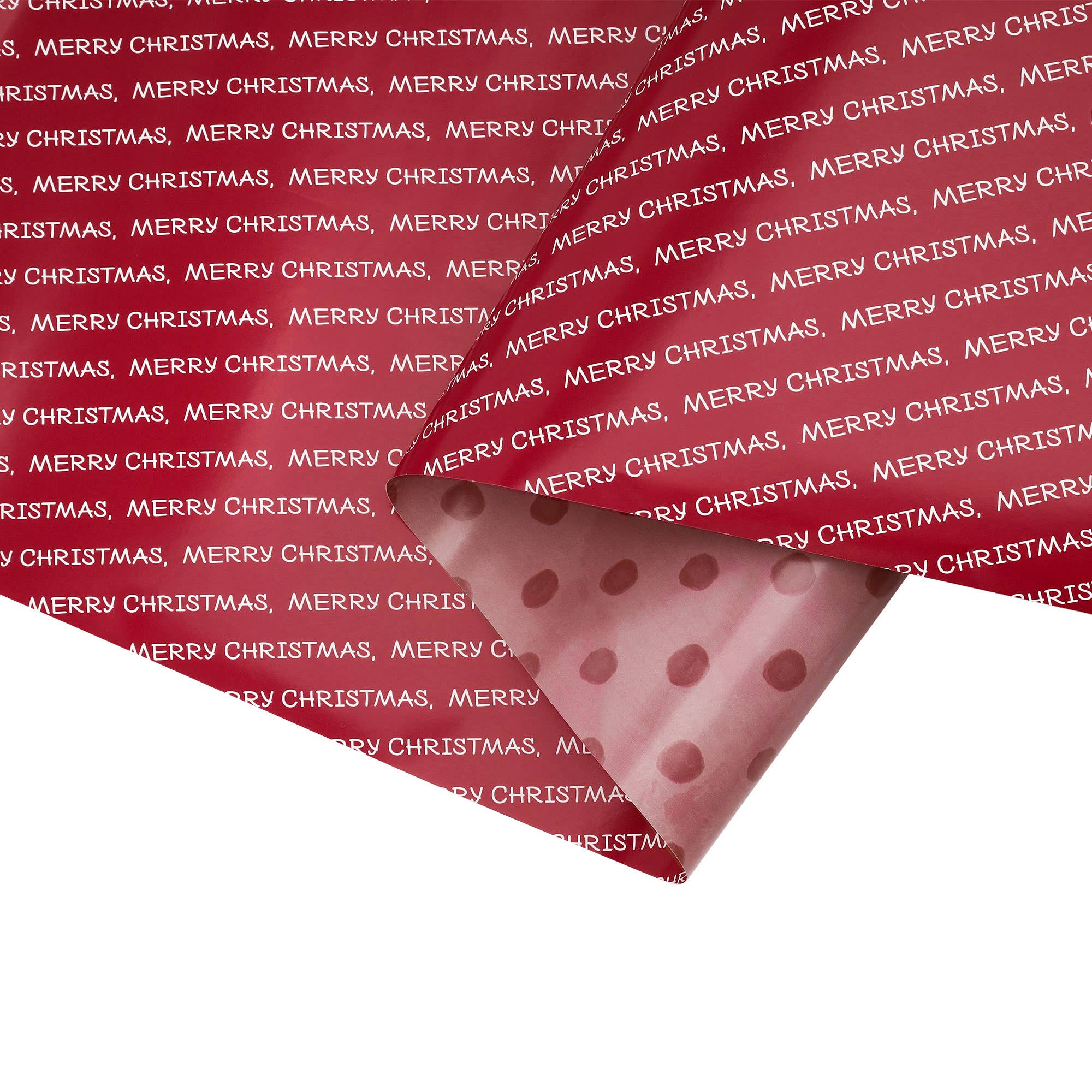* Dual-Sided Design: This holiday wrapping paper features a festive Merry Christmas print in red and white on one side, and a charming polka dot print on the other.