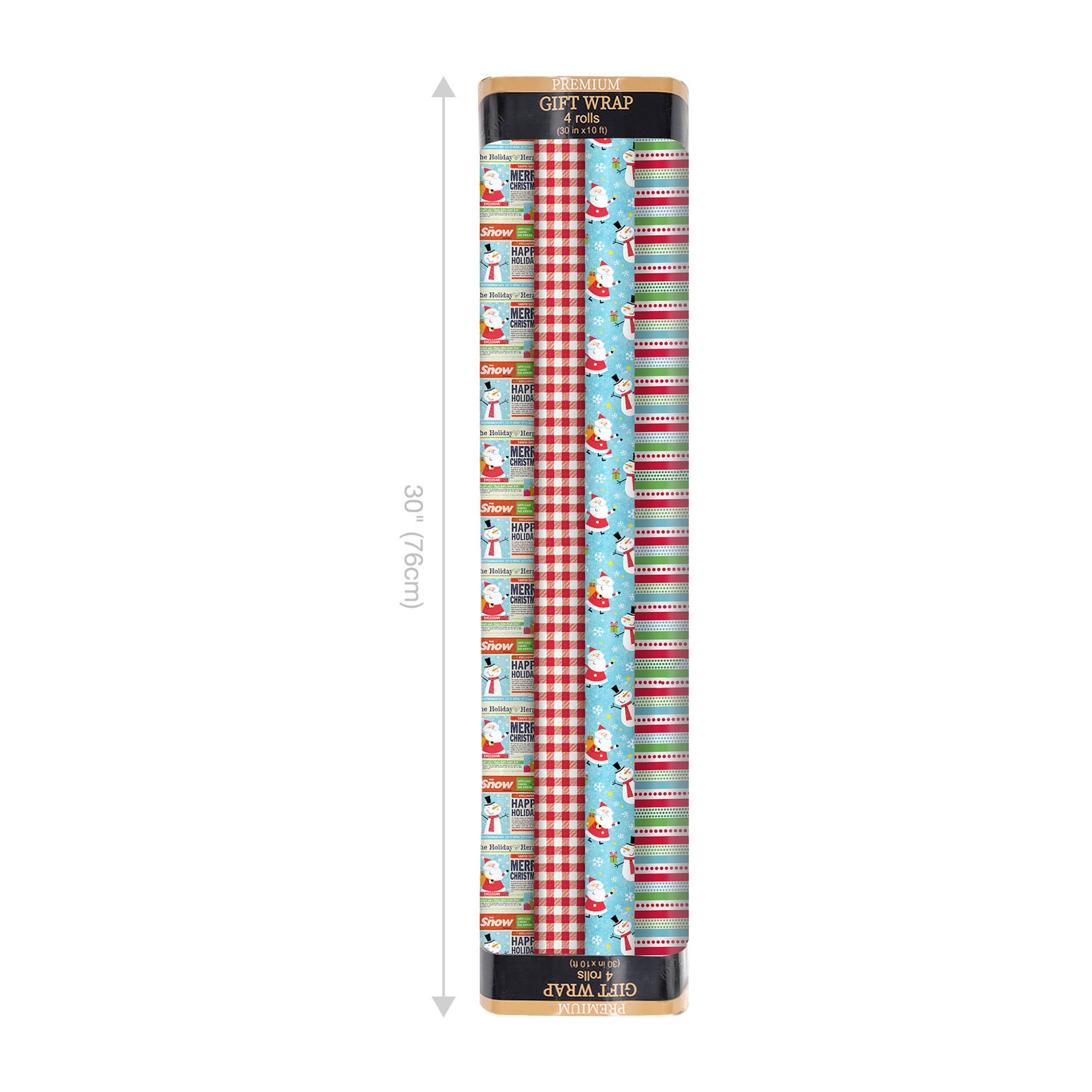 30" x 10' Holiday Wrapping Paper Bundle (4-pack) | Extra, Extra