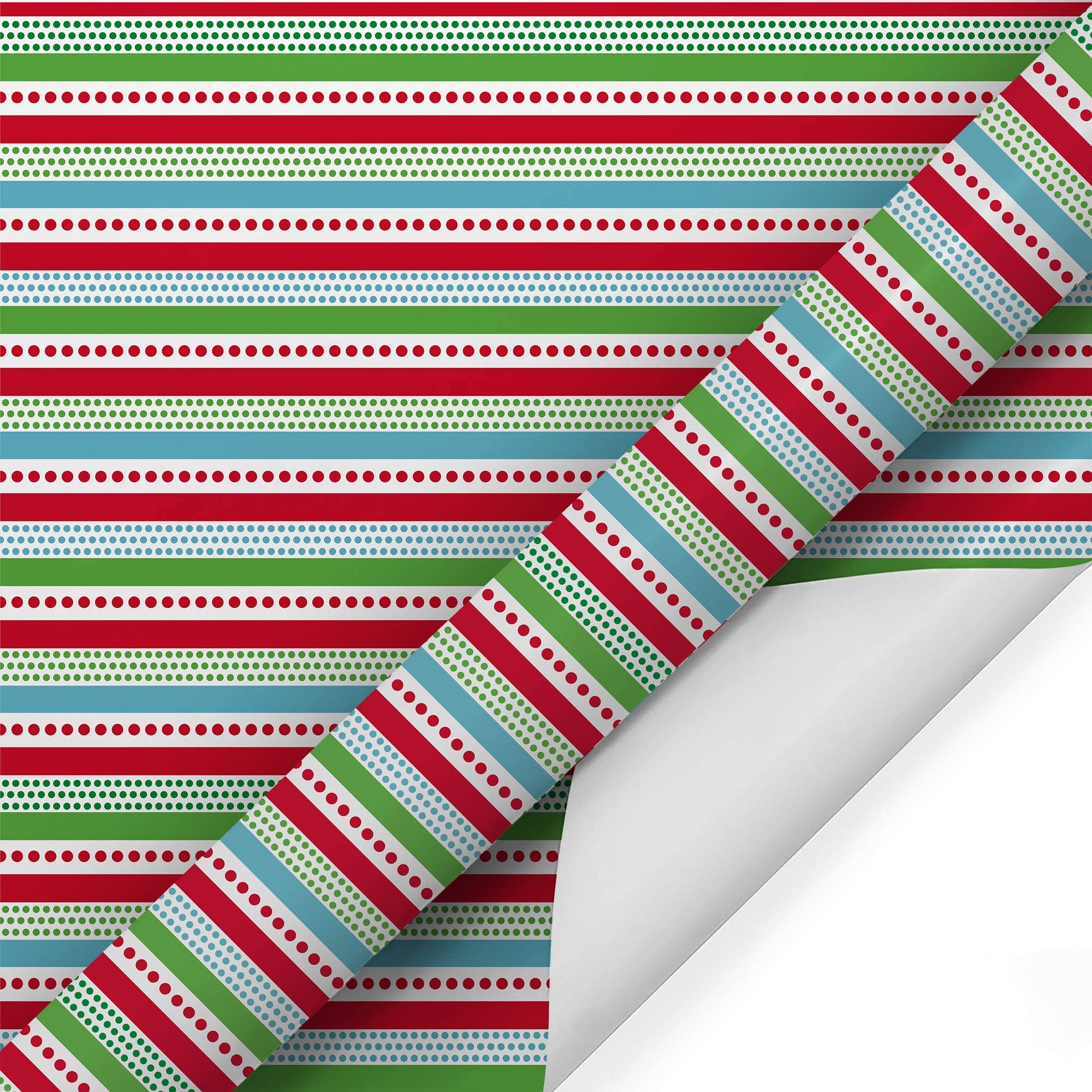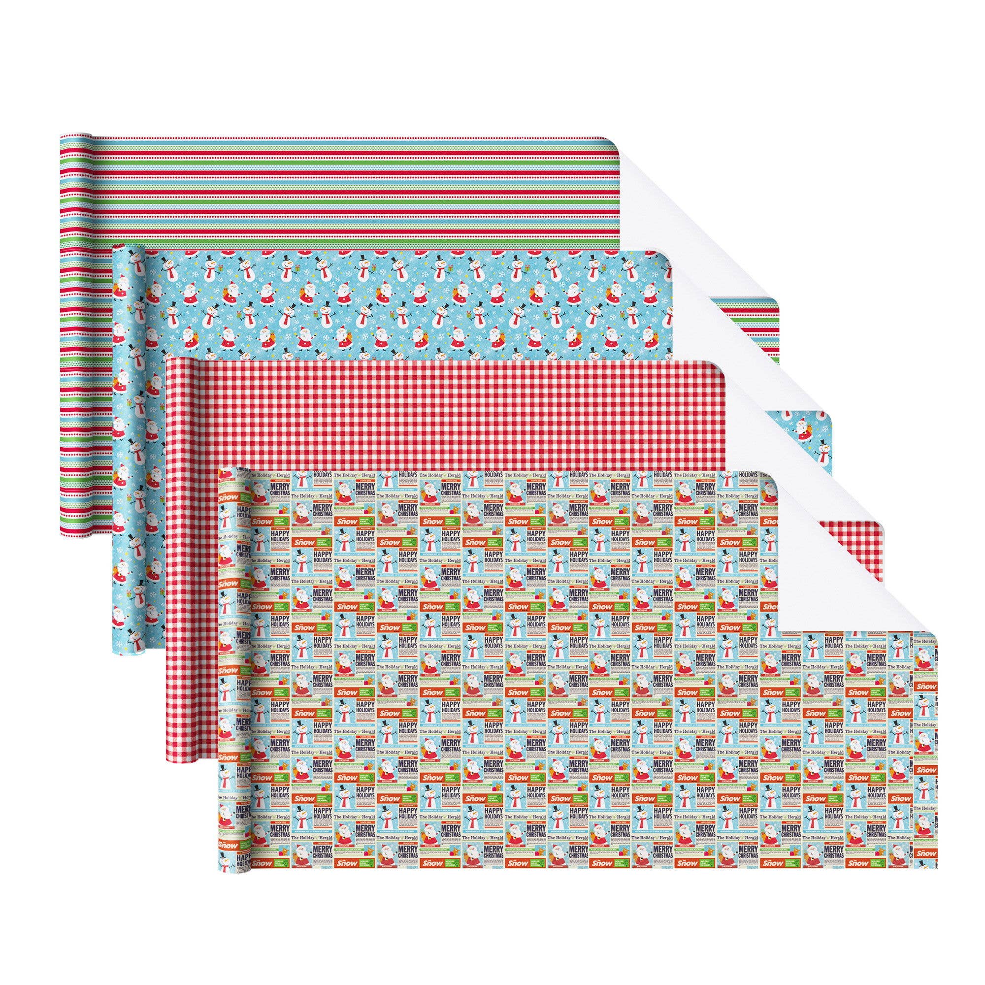 * Variety of Designs: This 4-roll holiday wrapping paper bundle offers a diverse selection of patterns, ensuring every gift is wrapped with unique style. * Reversible Patterns: Each roll features reversible designs, doubling your options with patterns like Holiday News, Red Gingham, Happy Snowman and Santa, and Red/Green/Blue Dots & Stripes. * Generous Dimensions: Each roll measures 30" x 10', providing ample wrapping paper to cover gifts of all sizes. * Quality Material: Made from durable paper with a smooth finish, ensuring easy handling and a polished presentation for your holiday gifts.