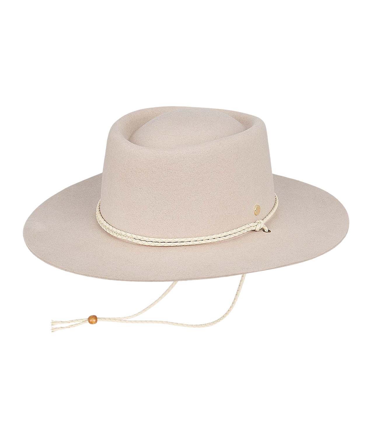 - Made from 100% Australian Wool, the Selwyn Fedora features an almond shaped crown, wide flat brim, braided crown band and chin cord.