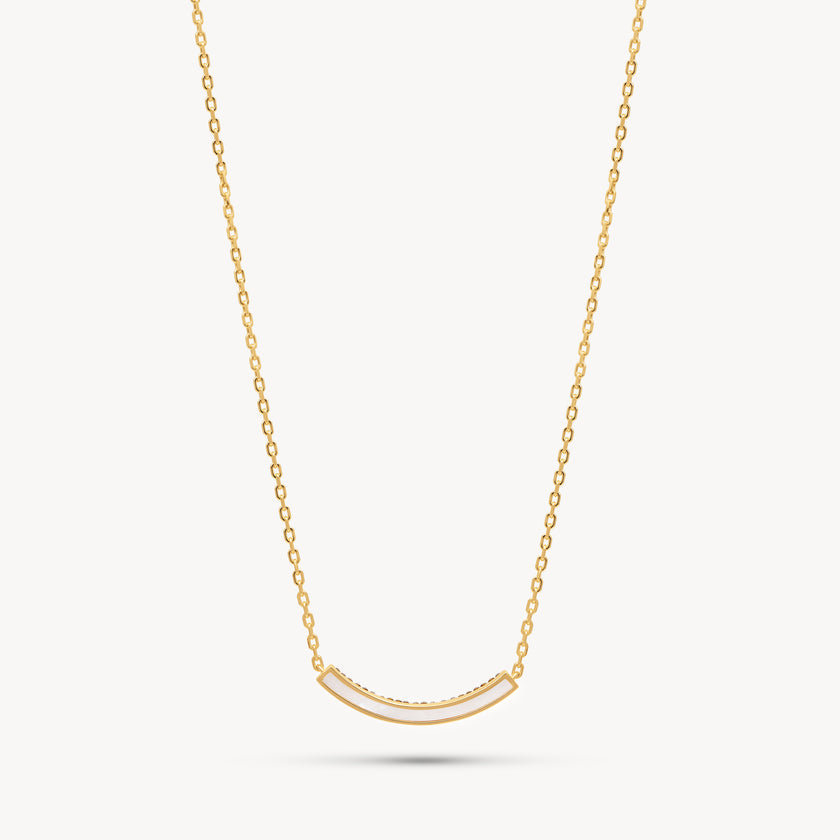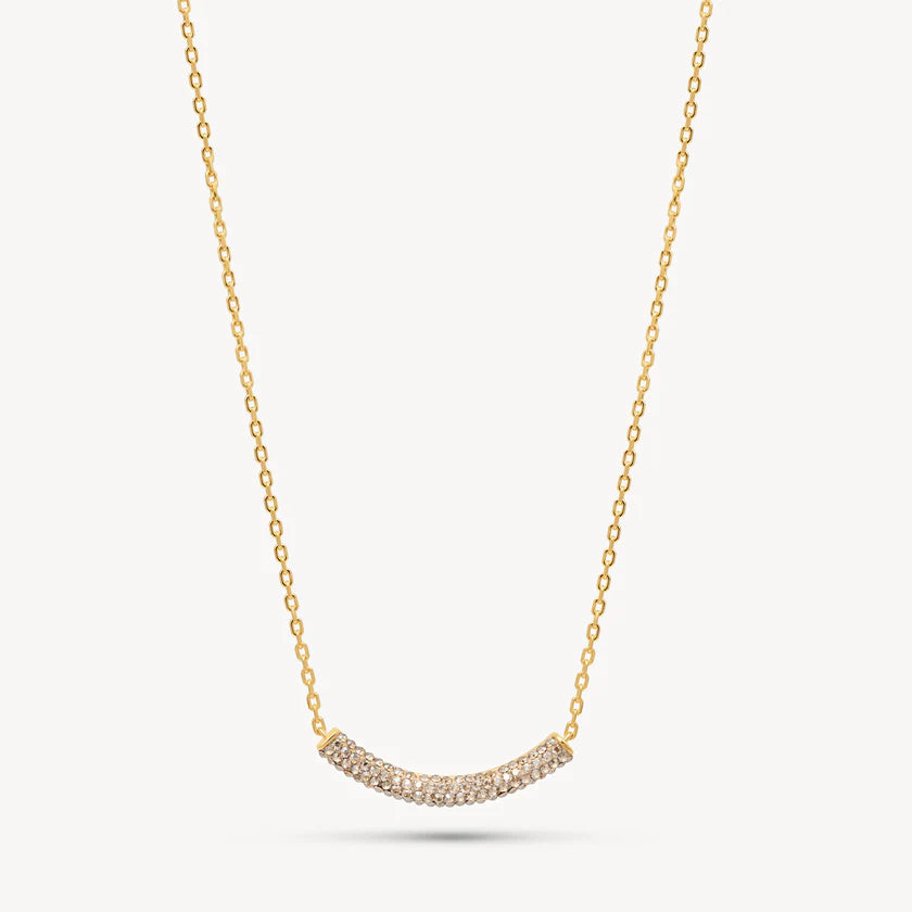 The Sparkle Bar Necklace takes a clean, sculptural shape and adds a vivid line of hand-set crystals—because simplicity should still shimmer. Designed to sit flat and centered, this curved bar silhouette catches the light from every angle, bringing just the right amount of brilliance to your everyday. Available in three Sparkle colourways and two metal finishes, this necklace is a staple with serious presence.