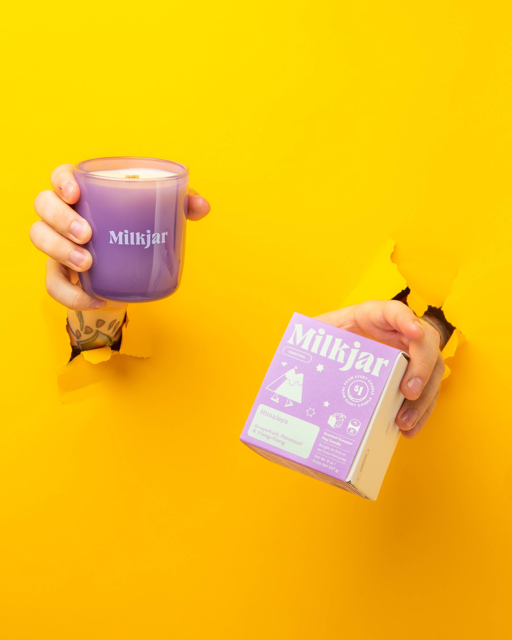 Grapefruit, Patchouli & Ylang-Ylang · 8 oz Essential Oil Candle Is it us? Or are the walls …melting. Are we flying? Wait more like — floating. The clouds are so beauuuutiful. And it smells — like grapefruit! And patchouli. And something more tropical. Oh man… I think I feel an OHM coming on… $1 from every candle sold supports the creation of inclusive and inviting spaces around the world · Crackling wooden wick · Plant based coconut soy wax · Scented with high quality, natural essential oils · Vegan and cruelty-free · 40-45 hour burn time with proper wick trimming · Hand-poured in sunny Calgary