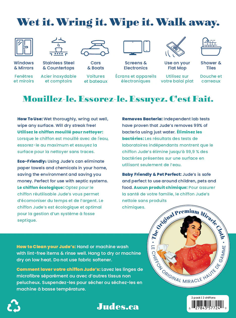 ✔︎ Jude's is tough! - Washable & reusable. If needed, use Jude's with even the harshest disinfectants. They won't hurt your Miracle Cloth.