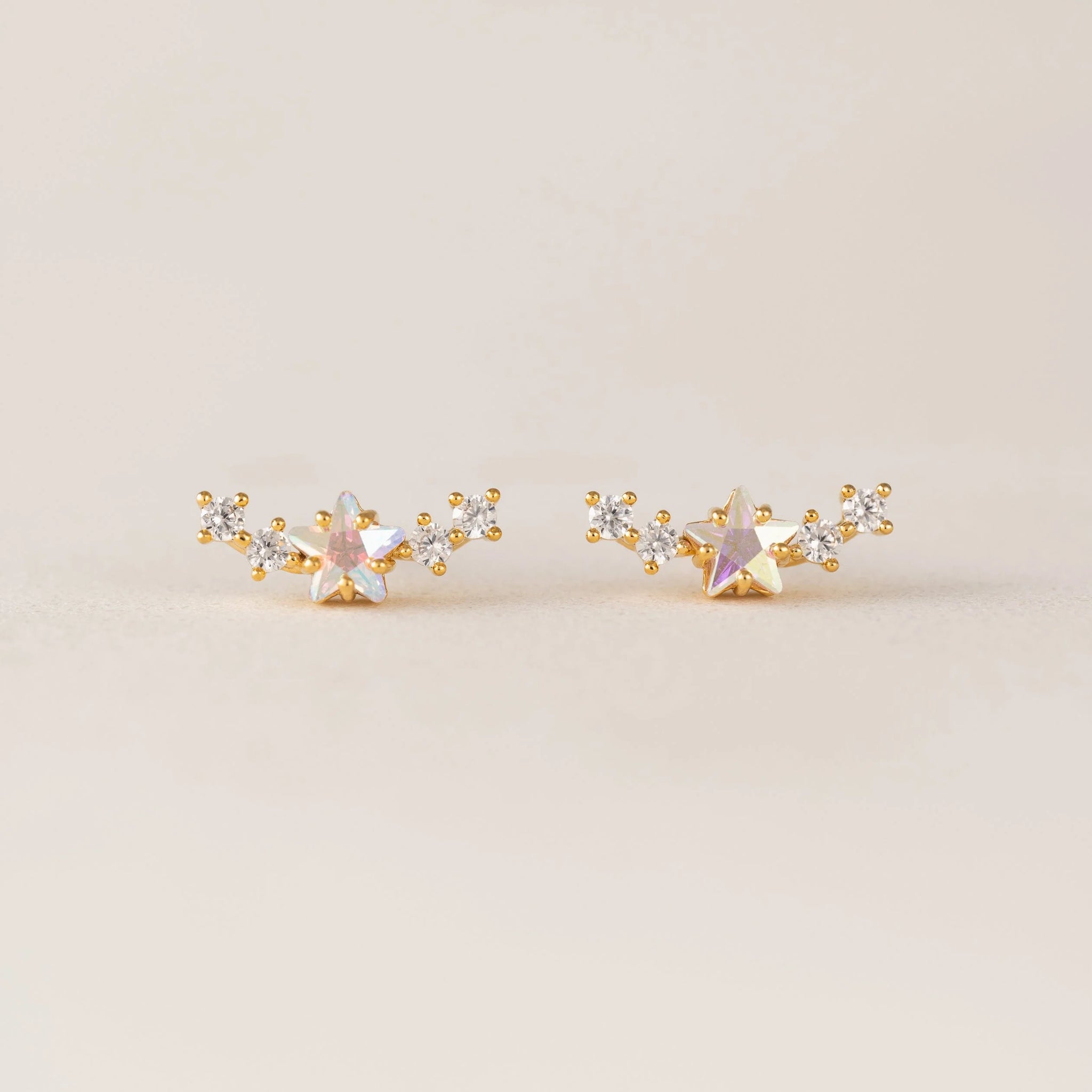 Tiny stars, major sparkle. These celestial-inspired climber earrings feature a trail of cubic zirconias that catch the light just right. Lightweight, luminous, and perfect for everyday orbit.