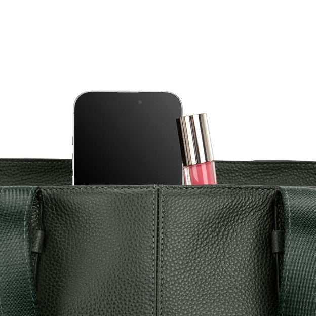 Effortless elegance meets everyday practicality—the Leather Tote combines supple pebbled leather with a thoughtfully designed spacious interior. Its timeless style helps elevate any outfit, seamlessly transitioning from the office to after-work activities. Inside the bag, you will find a padded laptop sleeve, an interior water bottle holder, and organizational sleeves. It also includes a separate phone pocket located on the top for quick access. A discreet StackIt™ strap on the back ensures effortless travel, whether you’re headed to the office or escaping for a weekend getaway.