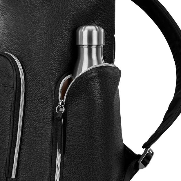 Crafted from supple pebbled leather, the Deluxe Leather Backpack effortlessly supports your dynamic lifestyle while elevating your look. It features padded laptop and tablet sleeves, a spacious front pocket, two side zippered pockets for your water bottle or umbrella, and comfortable shoulder straps. Finished with minimalist details and subtle branding, it beautifully blends style and everyday function. The built-in StackIt™ strap adds ease to your commuting and travel.