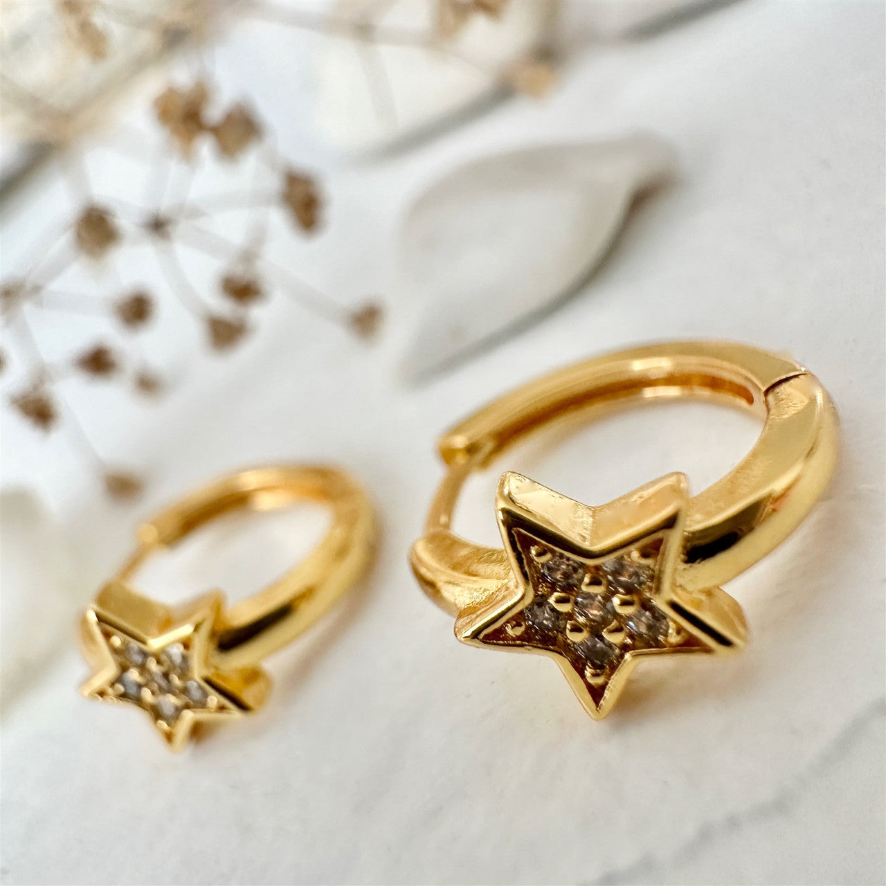 Pika & Bear "Olenna" Rhinestone Star Hugger Hoop Earrings in Gold