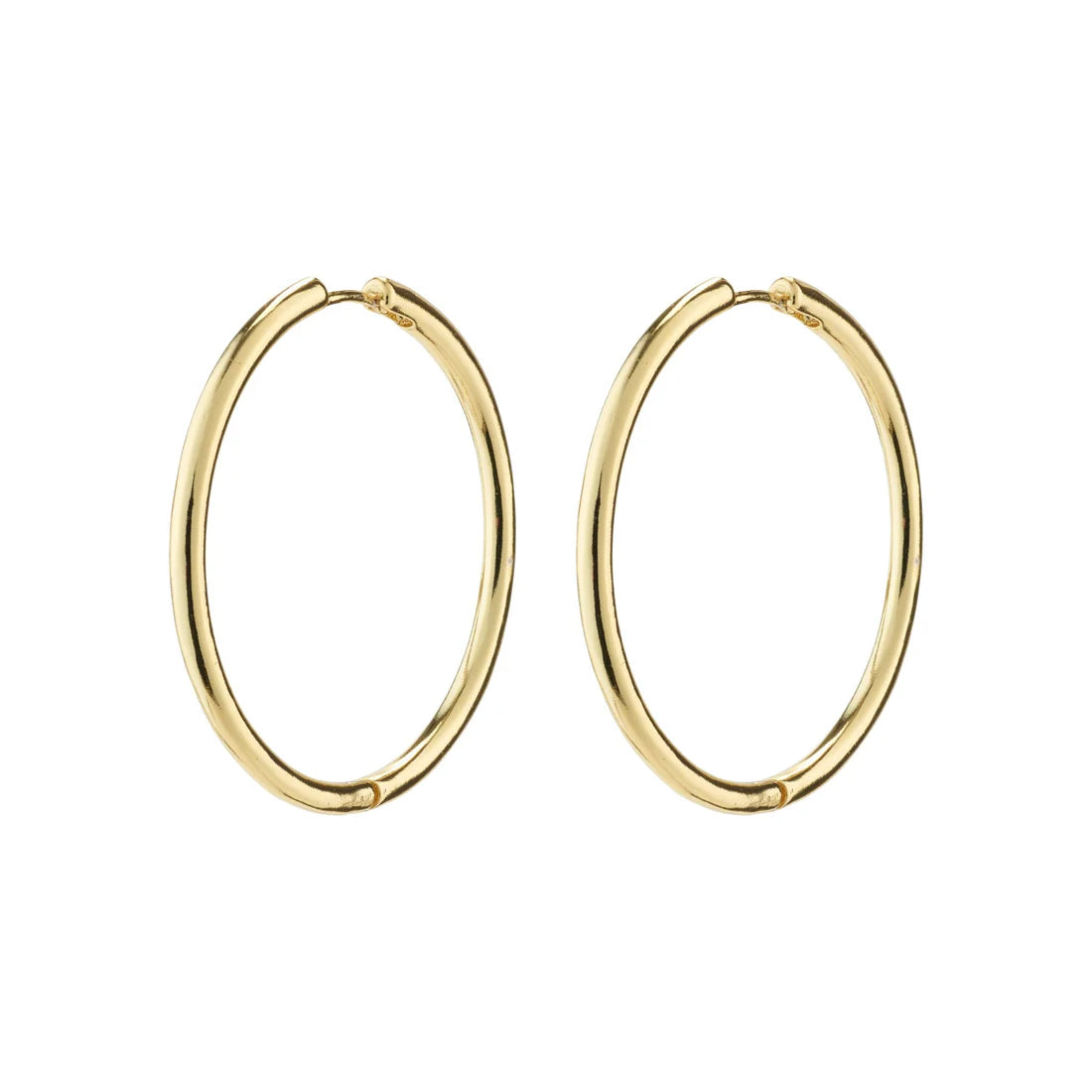 A golden go-to! These maxi hoops from Pilgrim are a must-have item that you can style in countless different ways. Wear them on their own for an everyday look, or combine them with other goodies and create your own expression. The hoops have an easy-to-use click lock that makes them very easy to use. A recycled item that is made from a min. of 75% recycled material.