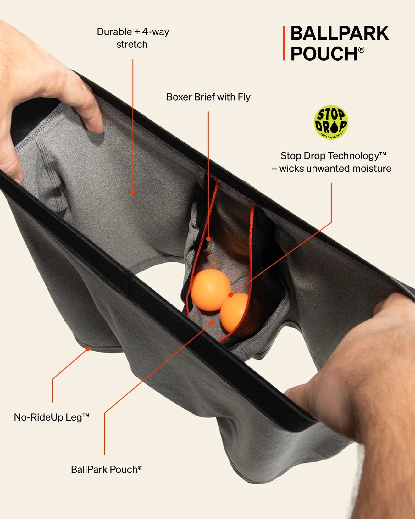 Daytripper Comfort Stretch is made with a durable, breathable, and moisture-wicking fabric to deliver premium comfort for guys on the go. Includes the BallPark Pouch®, Stop Drop Technology™, and No-RideUp Leg™.