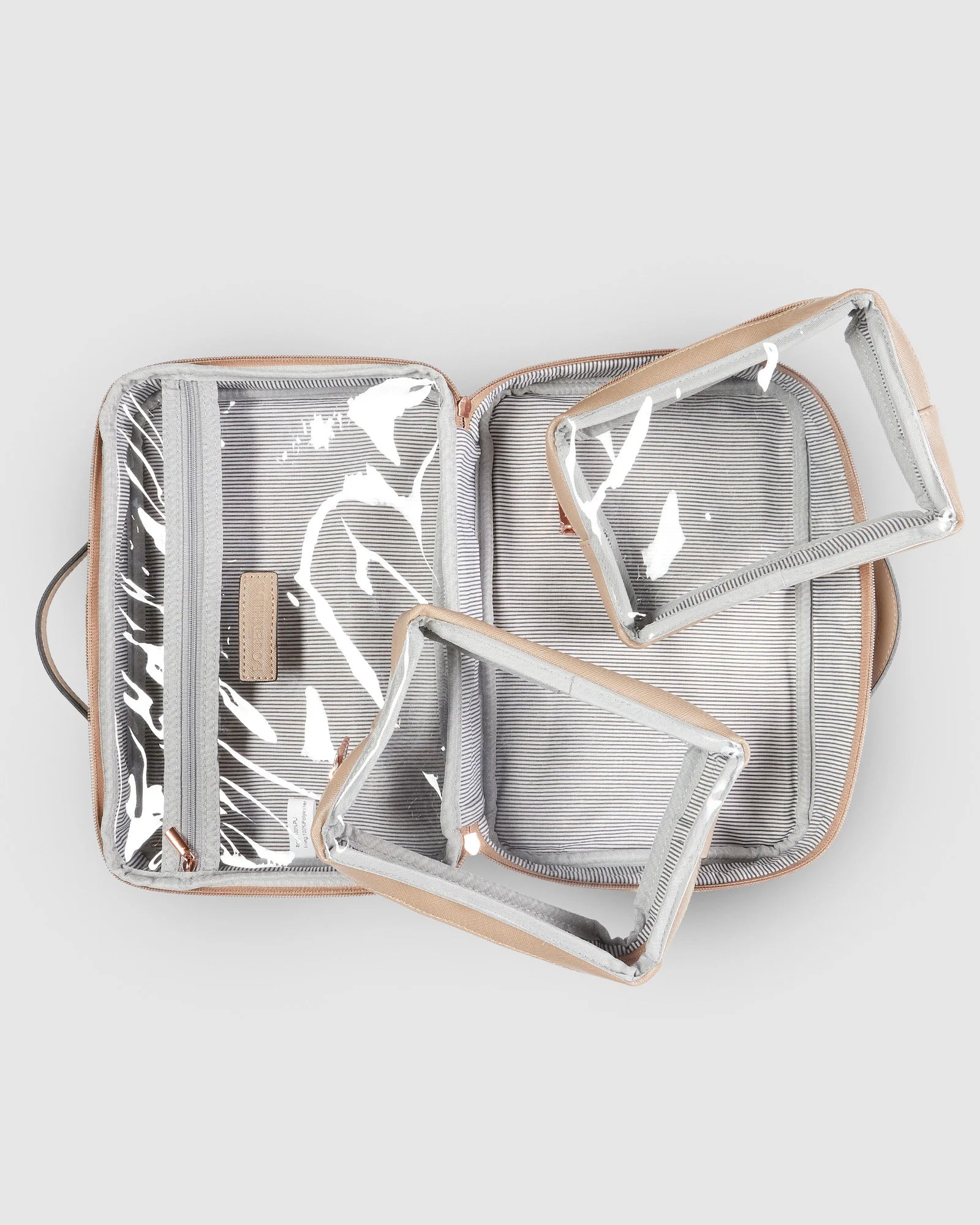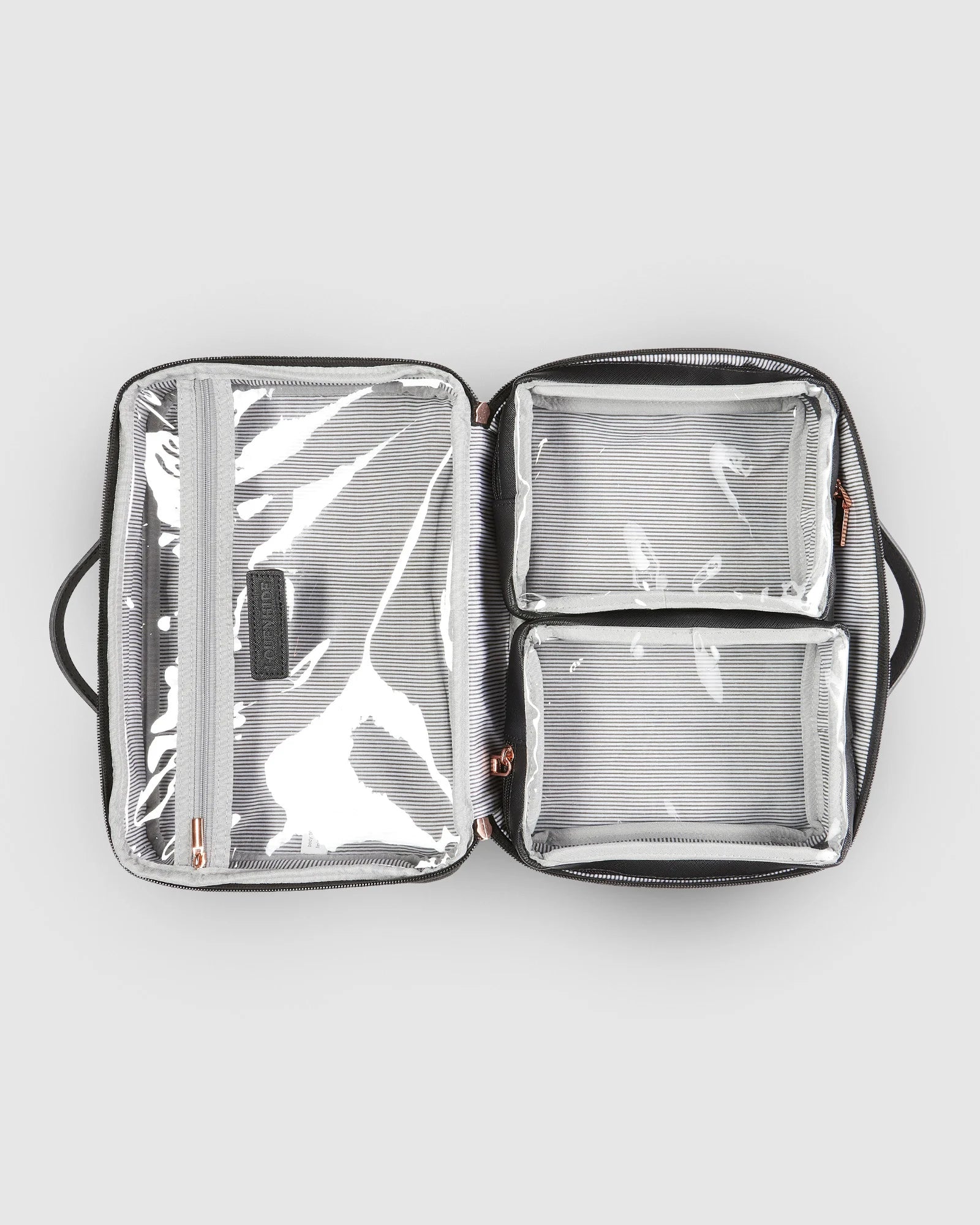 The Louenhide Georgie Cosmetic Case is the perfect travel companion offering an organizational solution for all your weekend and overnight getaways. The internal zipped compartments are a practical way to ensure you can organize all of your cosmetics functionally and store liquids safely. The structured design allows for easy transportability to make packing a breeze.